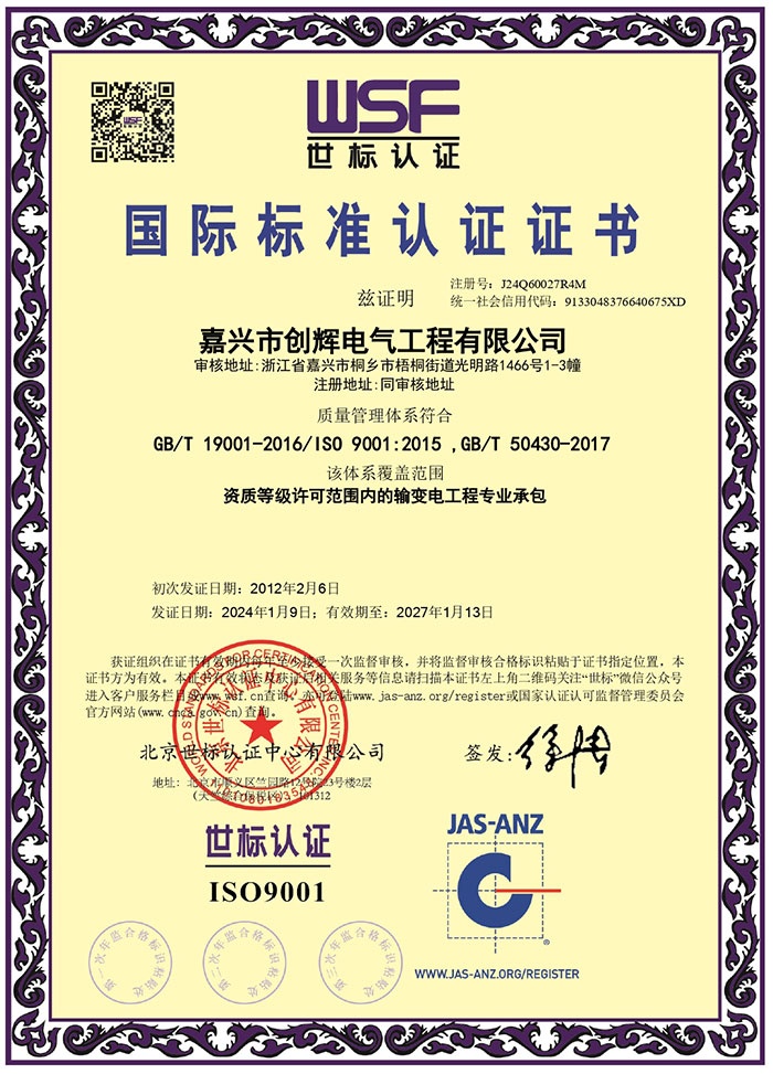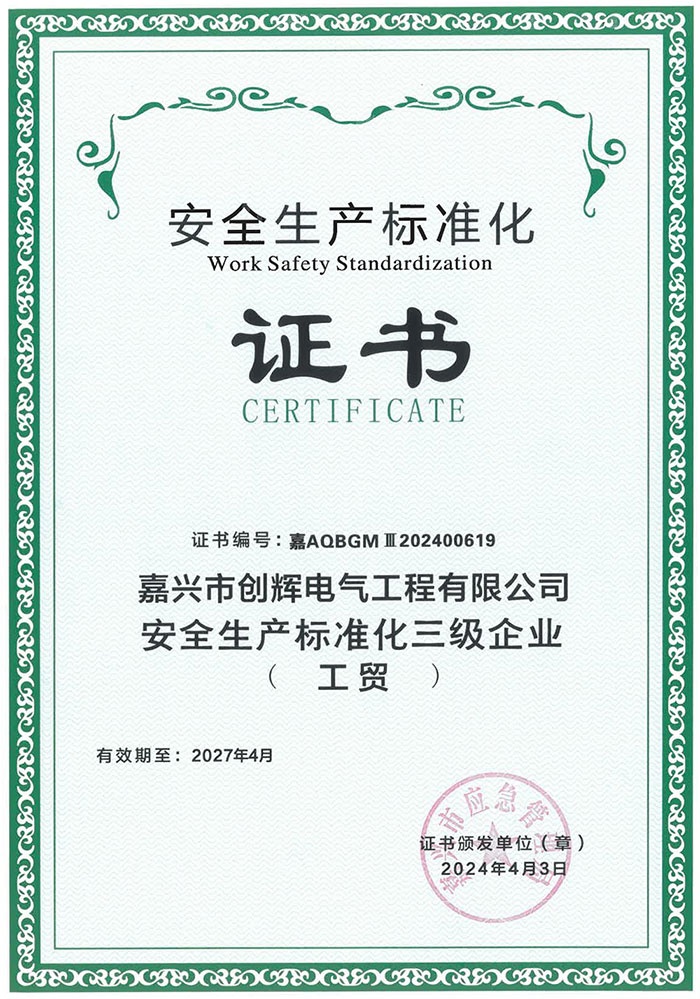 2013年3月,正式更名為“嘉興市創(chuàng)輝電氣工程有限公司”。